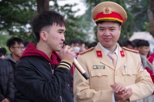Tiếp đó, đồng chí Thiếu tá Nguyễn Văn Tiến cán bộ Phòng Cảnh sát giao thông tỉnh Bắc Ninh đã trực tiếp tuyên truyền những nội dung trọng tâm của luật Trật tự an toàn giao thông đường bộ; phân tích các lỗi vi phạm phổ biến ở học sinh; chia sẻ những tình huống giao thông thực tế, từ đó giúp các em nhận diện rủi ro và hậu quả của việc thiếu ý thức khi tham gia giao thông. Đồng chí Trung tá Nguyễn Văn Dần – Phó trưởng phòng Tham mưu – Hành chính Trường Cao đẳng Kỹ thuật Phòng không – Không quân đã hướng dẫn kiến thức cơ bản về cấu tạo xe, kỹ thuật điều khiển, cách xử lý tình huống khẩn cấp và nguyên tắc lái xe an toàn. Không khí của buổi tuyên truyền trở nên sôi nổi bởi sự tương tác tích cực giữa các cán bộ tuyên truyền với học sinh nhà trường. Nhiều câu hỏi tình huống được đưa ra để học sinh thảo luận, trả lời. Các em hào hứng phát biểu, chia sẻ hiểu biết, bày tỏ quan điểm và nhận được những phần quà động viên ý nghĩa. Qua đó, kiến thức pháp luật giao thông được truyền tải một cách dễ hiểu, dần gũi và được ghi nhớ lâu hơn.